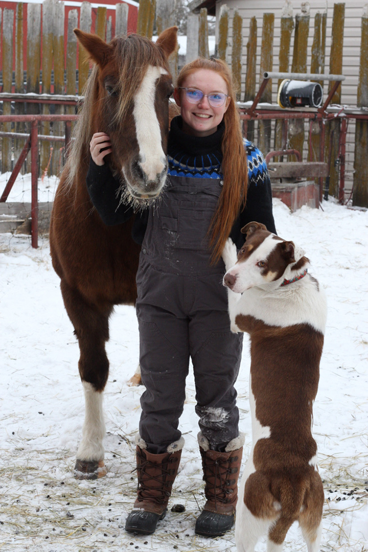 Hannah Hjorteland of Macoun, Sask., grew up on her family’s organic grain farm where she was surrounded by various livestock and pets — horses, goats, sheep, poultry, dogs, cats and parakeets.