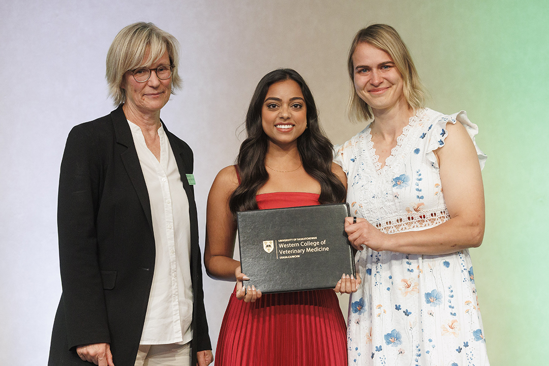 The inaugural award, valued at $1,500, was given last spring to Dr. Aparna Chatterjee (DVM), a 2025 WCVM graduate. Chatterjee “felt truly honoured, grateful and surprised” when she received the scholarship.